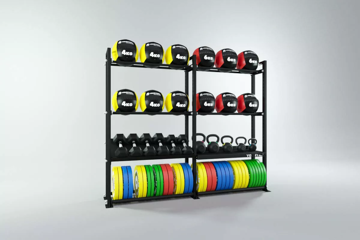 Модульные стеллажи YOUSTEEL – универсальное и простое решение по организации эффективного хранения вашего оборудования в зале. Они отлично вписываются в интерьер любого спортивного зала. Стеллаж YOUSTEEL изготавливаются из стали толщиной 3 мм, поверхность покрыта порошковой краской.