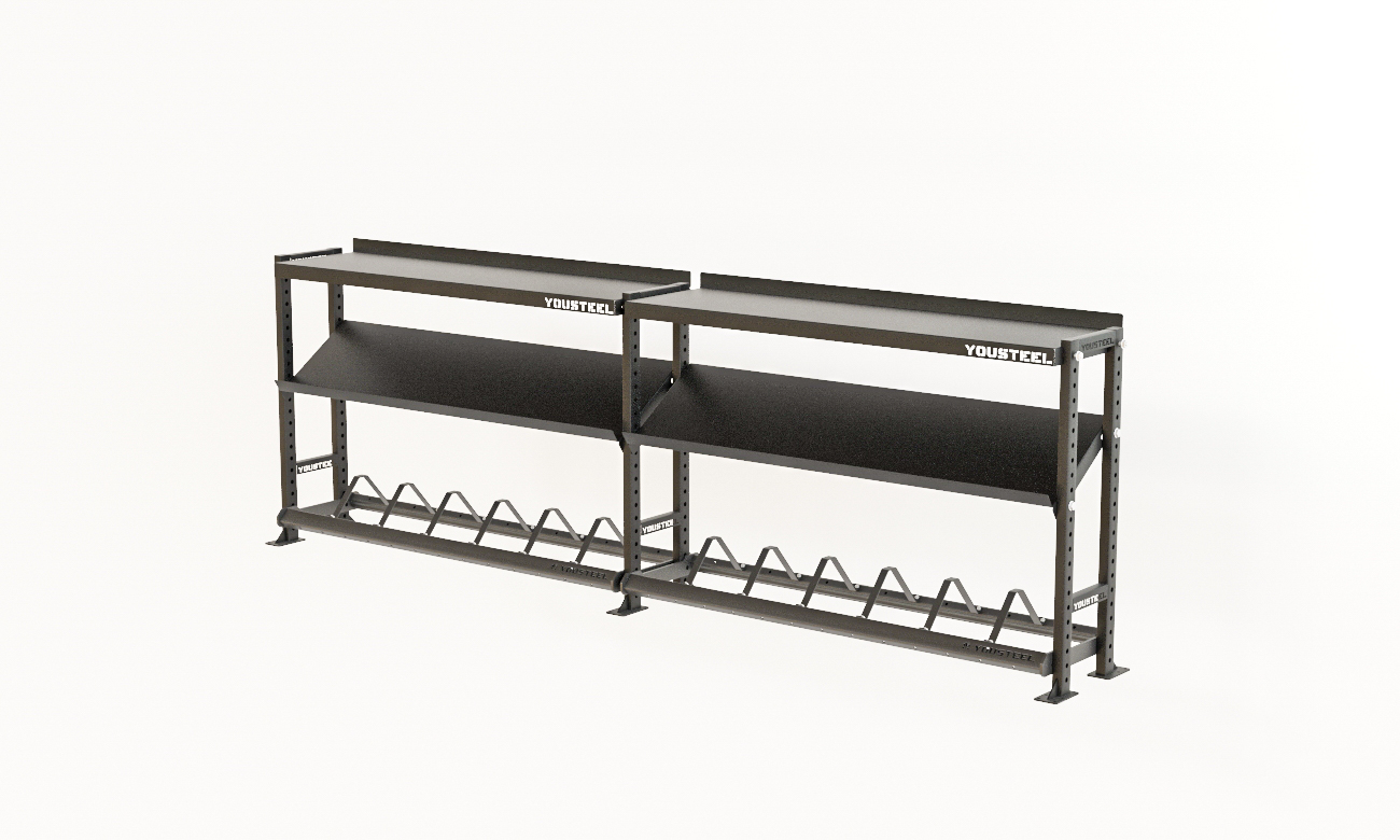 Модульные стеллажи YOUSTEEL – универсальное и простое решение по организации эффективного хранения вашего оборудования в зале. Они отлично вписываются в интерьер любого спортивного зала. Стеллаж YOUSTEEL изготавливаются из стали толщиной 3 мм, поверхность покрыта порошковой краской.