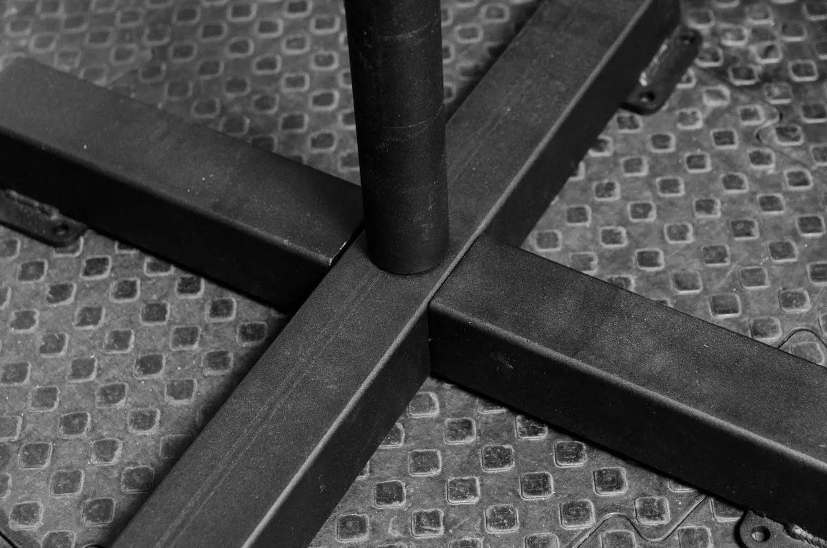 Простой и надежный вариант хранения дисков - это стопкой. Но если накидать диски просто так, то рано или поздно аккуратная стопка превратиться в поехавшую башню. Этого можно избежать, если надевать диски на какую-либо основу. Наша стойка для исков - это незамысловатая конструкция, в основании металлическое перекрестие, центральная часть выполнена из трубы с диаметром 48. Вся конструкция покрыта порошковой краской. Высота 1265мм.