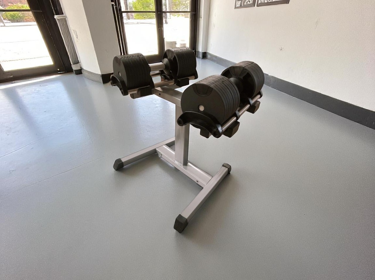 Стойка для регулируемых гантелей позволяет не только компактно хранить гантели, но и удобно менять их вес во время занятий.