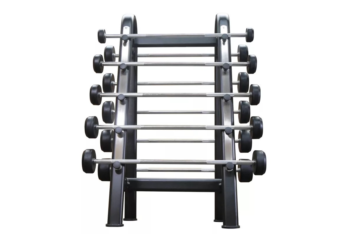 Идеальное решение для хранения гантелей. Стойка выполнена из стали, имеет бортики для фиксации гантелей и обеспечит быстрый и лёгкий доступ к снарядам. Небольшие габариты стойки позволят легко найти для неё место даже в небольших залах.