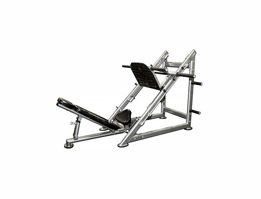 Тренажер жим ногами нацелен на прокачку четырехглавой мышцы бедра, большой ягодичной, а также подколенного сухожилия с минимальной нагрузкой на поясницу. Так как траектория движения платформы задана ограничителями, не требуется долгое освоение техники, а из-за отсутствия осевой нагрузки это упражнение безопаснее приседаний с весом. Эта изделие коммерческого класса обеспечивает стартовое сопротивление в 40кг и максимально нагружаемой нагрузкой до 450кг. Тренажер имеет габариты 2187x1692x1473мм. Максимальная нагрузка до 450кг.